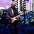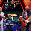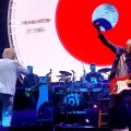 Roger seemed especially happy to be playing at the Beach. He was happy and pleasant, without any audio issues. He touched his ear piece a few times, but no pauses or do-overs. Pete windmilled a few times and it was cool especially against old footage of him playing in the past.